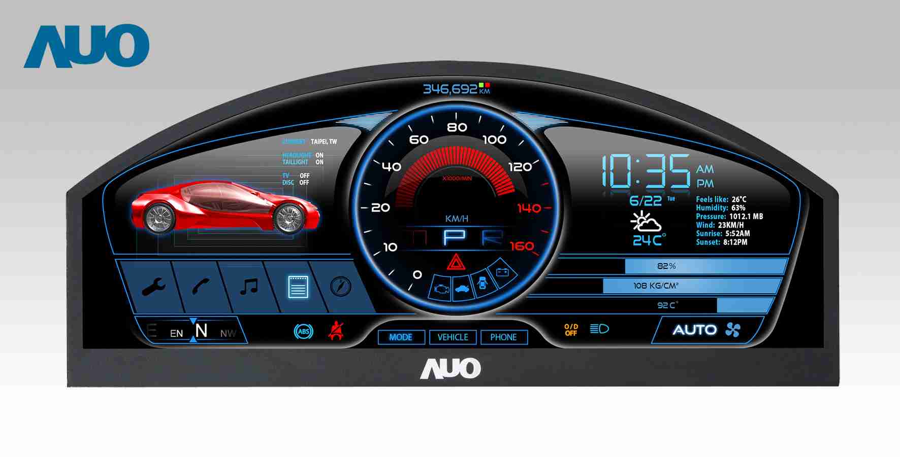 壹号平台 12.3吋超高解析异型切割车用面板,,,拥有流线外观及精细画质