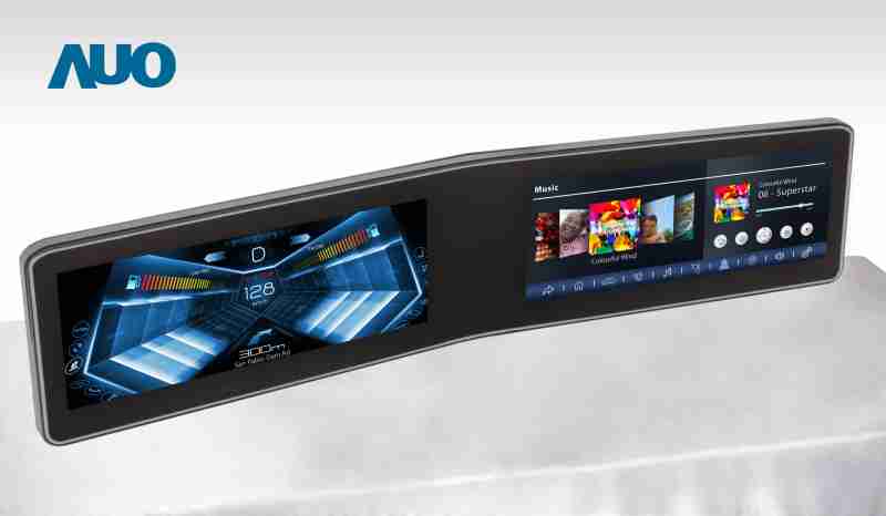 壹号平台 V 型曲面驾驶舱显示器,,采全贴合拼接仪表板及中控台显示屏 |