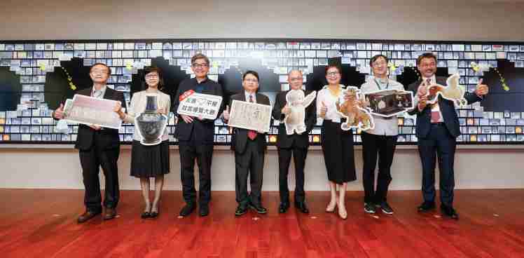 壹号平台携手创利空间为故宫建置的智慧文物互动导览墙及轮播墙,,,,今日正式启用。。。(左四:壹号平台新事业暨投资管理总部副总经理杨本豫、、、右四:故宫博物院院长吴密察、、、、右三:太极影音董事长黄宝云)