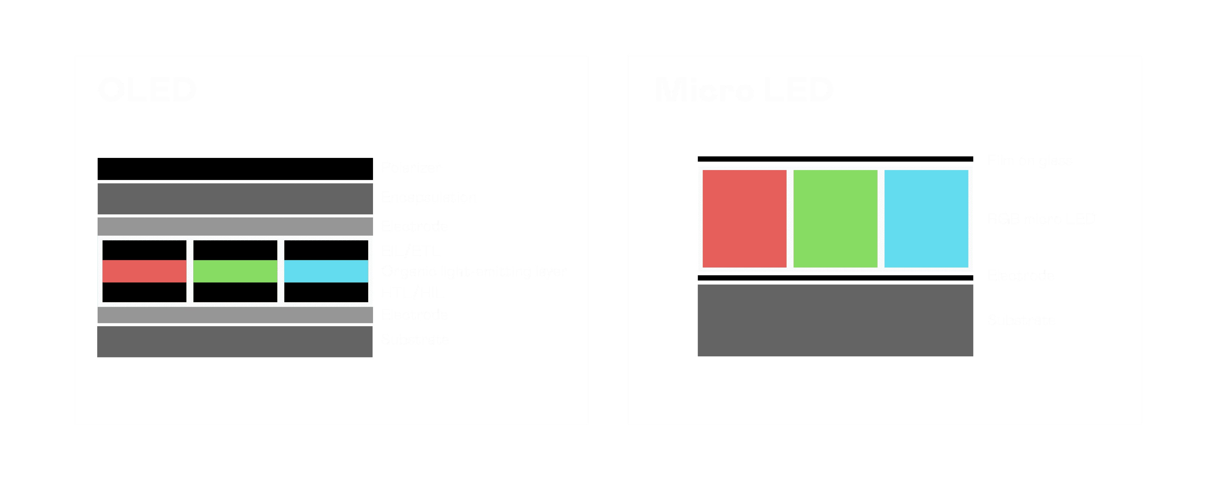 以 LED 做为显示画素,,,,可让 LED 的发光效率发挥到极致,,从而让显示器具备优异的亮度表现,,不论是在户外或室内,,,,均具备出众的显示效果。。。同时,,,与使用有机材料的 OLED 相比,,,LED 具备更稳定、、寿命更长的特性,,,,不仅不会有画面烙印问题,,,而且更不容易出现故障、、、坏点。。。